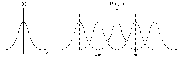On second thought, maybe this isn't that helpful after all. But in the special case of one of the functions being a sum of Dirac impulses (e.g., a comb function), it is easier: The convolution f * cw consists of infinitely many copies of f, each two adjacent ones being w apart, and then all added up, see Figure 4.