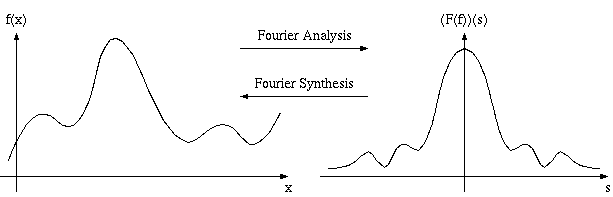 Prerequisite for this document is a basic understanding of Fourier Analysis on an intuitive level. You have to know that a function f(x) in the spatial (or time) domain has a counterpart F(f) in the frequency domain. Any function satisfying some simple properties can be written as a weighed sum of harmonic functions (shifted and scaled sine curves), and (F(f))(s), called the Fourier transform or spectrum of f, gives the weight of the harmonic function of frequency s in f.